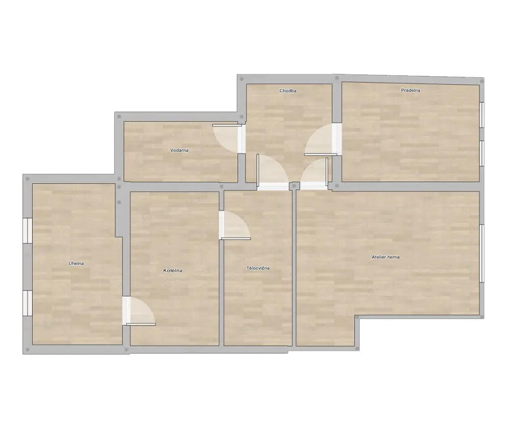 Velkým benefitem domu je také rozsáhlý suterén se šesti místnostmi, který poskytuje široké možnosti využití – od hobby prostoru až po pracovní zázemí.